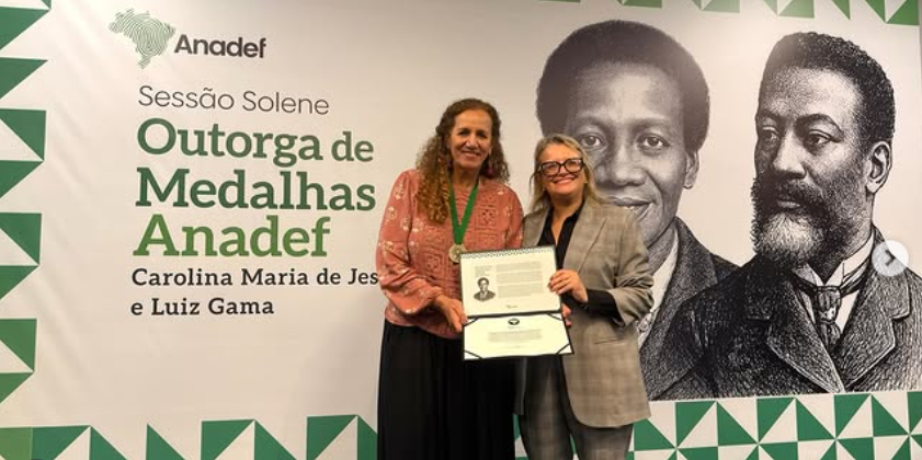 Receber a Grã-Medalha Carolina Maria de Jesus, concedida pela ANADEF, é uma honra que carrega um significado profundo! Carolina transformou a palavra em resistência, denunciou desigualdades e deu voz a quem o Brasil insistia em silenciar. Ter seu nome associado a uma homenagem feita por defensoras e defensores públicos federais, profissionais que atuam diariamente na linha de frente da justiça social, reforça o sentido do nosso compromisso com a democracia, com os direitos humanos e com a defesa dos mais vulnerabilizados. Que a memória de Carolina siga nos lembrando que justiça não pode ser privilégio e que dignidade não se negocia. Obrigada, ANADEF!