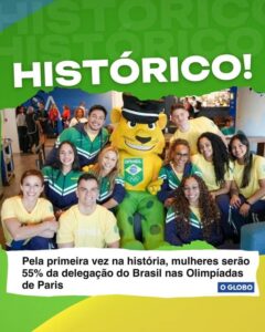 Pela primeira vez na história, o Time Brasil será composto por mais mulheres do que homens em uma edição dos Jogos Olímpicos. Serão 277 atletas, dos quais 153 são mulheres e 124 são homens. Nunca antes o total de brasileiras superou o de brasileiros em uma delegação olímpica do país. As mulheres têm sido destaque nas últimas edições das Olimpíadas e dessa vez temos certeza que não será diferente. Estaremos na torcida! Vai Brasil!!! ![]()