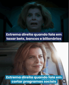A extrema direita mostra sua verdadeira face: esperneia quando o assunto é taxar os ricos, mas sorri quando é pra tirar dos pobres. O retrato fiel de quem sempre escolhe o lado dos privilégios!