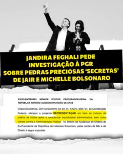 Protocolei, com mais sete parlamentares, uma representação junto à PGR para investigar indícios de improbidade administrativa e crimes contra a Administração Pública em torno das pedras preciosas recebidas por Jair e Michelle Bolsonaro no dia 26 de outubro de 2022 em Teófilo Otoni (MG). Solicitamos depoimentos à Polícia Federal de todos os envolvidos, além da colheita de provas e outras providências legais. Assinam a representação comigo os deputados federais Rogério Correa (PT-MG), Henrique Vieira (PSOL-RJ), Duarte Jr. (PSB-MA) e Rubens Pereira Junior (PSB/MA), e dos senadores Randolfe Rodrigues (PT-AP), Fabiano Contarato (PT-ES) e Jorge Kajuru (PSB-GO). Ainda serão apresentadas representações no mesmo âmbito ao Supremo Tribunal Federal, Tribunal de Contas da União e Polícia Federal.