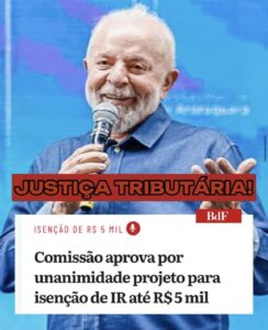 Vitória do povo! Aprovamos na Comissão de Finanças e Tributação da Câmara dos Deputados o projeto que isenta do Imposto de Renda quem ganha até R$ 5 mil por mês. Essa é uma conquista histórica para a classe trabalhadora e reforça o compromisso do governo Lula com a justiça fiscal e a redução das desigualdades. Seguimos lutando por um sistema tributário mais justo, onde os mais pobres paguem menos e os mais ricos contribuam com o que devem!