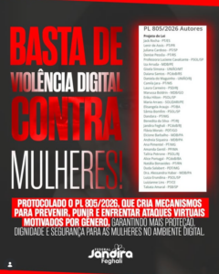 Não vamos aceitar que a violência digital contra mulheres siga sendo naturalizada ou tratada como algo sem importância. Por isso, foi protocolado o PL 805/2026, da qual sou co-autora, para enfrentar de frente esses ataques, responsabilizar agressores e proteger as vítimas. Chega de impunidade e de silêncio: violência virtual é violência real, e quem pratica precisa responder. Seguiremos firmes, sem recuar um centímetro, na defesa das mulheres. ✊