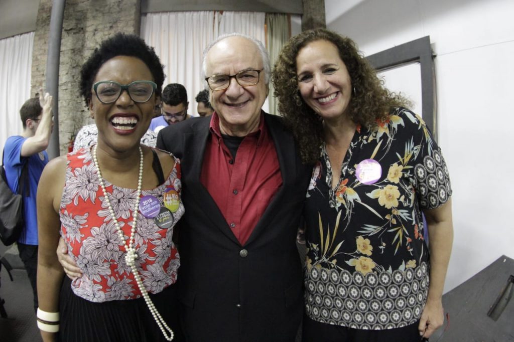 Taina de Paula, Boaventura de Sousa (`Prof da faculdade de Economia de Coimbra, Portugal) e a deputada Jandira Feghali prestigiam o lançamento do manifesto (Fotos: Vitor Vogel)