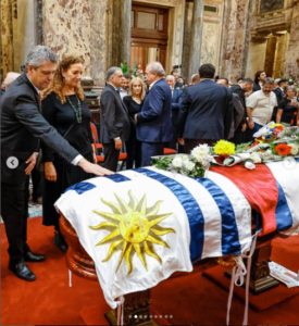 Estive hoje no Uruguai, ao lado do presidente @lulaoficial e membros do governo e Parlamento, para a despedida de um dos maiores líderes populares do mundo: José ‘Pepe’ Mujica. Prestamos nossas homenagens a este grande homem, que fez do amor uma ferramenta revolucionária e da luta por justiça social uma inspiração permanente e alento para todos que acreditamos num mundo melhor. Meus sentimentos a Lucía Topolansky, companheira de Pepe, e a todo o povo uruguaio. MUJICA PRESENTE!
