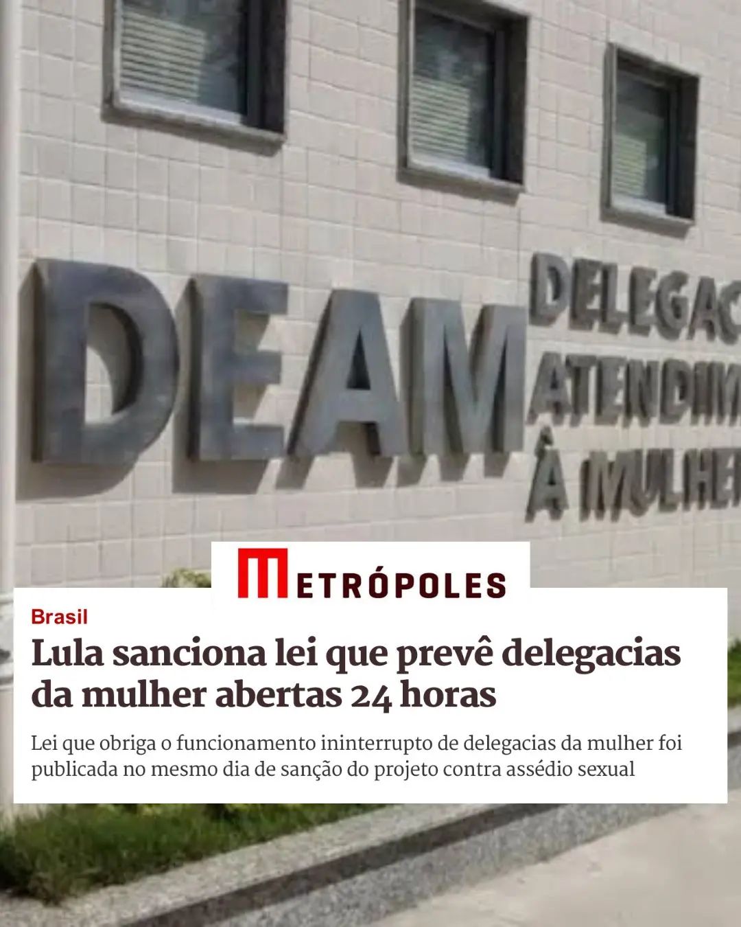 Que notícia boa para abrir o dia! Agora, Delegacias da Mulher terão atendimento 24 horas. Lula sancionou duas leis, duas lutas do Parlamento brasileiro: a que obriga o funcionamento ininterrupto das delegacias e que cria programa de combate ao assédio sexual. Temos agora um Estado que não é omisso com a violência doméstica e familiar, crimes contra a dignidade sexual e feminicídios! A luta não para!