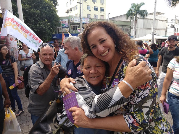 “Jandira, temos muito orgulho do seu mandato. Ele representa a luta em defesa das mulheres e dos direitos dos trabalhadores. Dia 7 de outubro, é 6565”, afirmaram Florinda Fernandes e Valdir dos Santos para a candidata à reeleição a deputada federal, Jandira Feghali (PCdoB), durante a caminhada ao Calçadão de Nova Iguaçu, na última quarta-feira (5). O candidato a deputado estadual e vice-prefeito licenciado de Nova Iguaçu, Ferreirinha, e mais a militância do partido participaram da atividade.