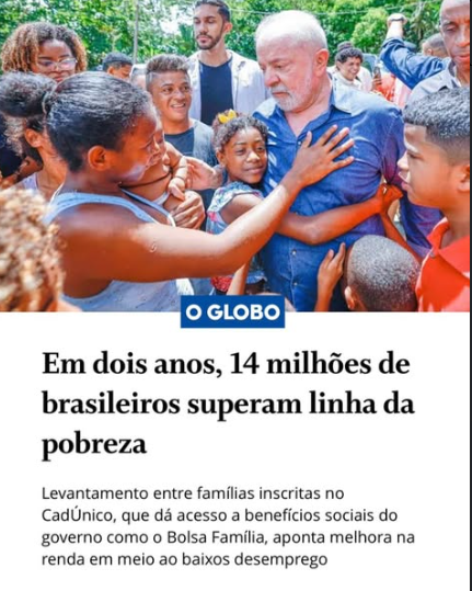 Em apenas dois anos, 14 milhões de brasileiras e brasileiros saíram da linha da pobreza, segundo dados do CadÚnico, resultado direto das políticas de inclusão social e de valorização da renda do governo @lulaoficial , como o Bolsa Família e o fortalecimento do emprego. Essa conquista mostra a diferença que faz ter um presidente e um governo comprometido em combater a fome e enfrentar as desigualdades, colocando a vida e a dignidade do povo no centro da agenda política.