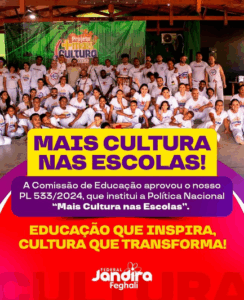 Nosso PL 533/2024 foi aprovado essa semana na Comissão de Educação! Ele cria o programa Mais Cultura nas Escolas, que leva arte, música, teatro e outras expressões culturais para dentro da escola. O objetivo é ampliar o acesso à cultura, valorizar a diversidade e fortalecer a educação como um espaço de aprendizado e transformação. O projeto segue agora para apreciação nas Comissões de Cultura, Finanças e Tributação e Constituição e Justiça.