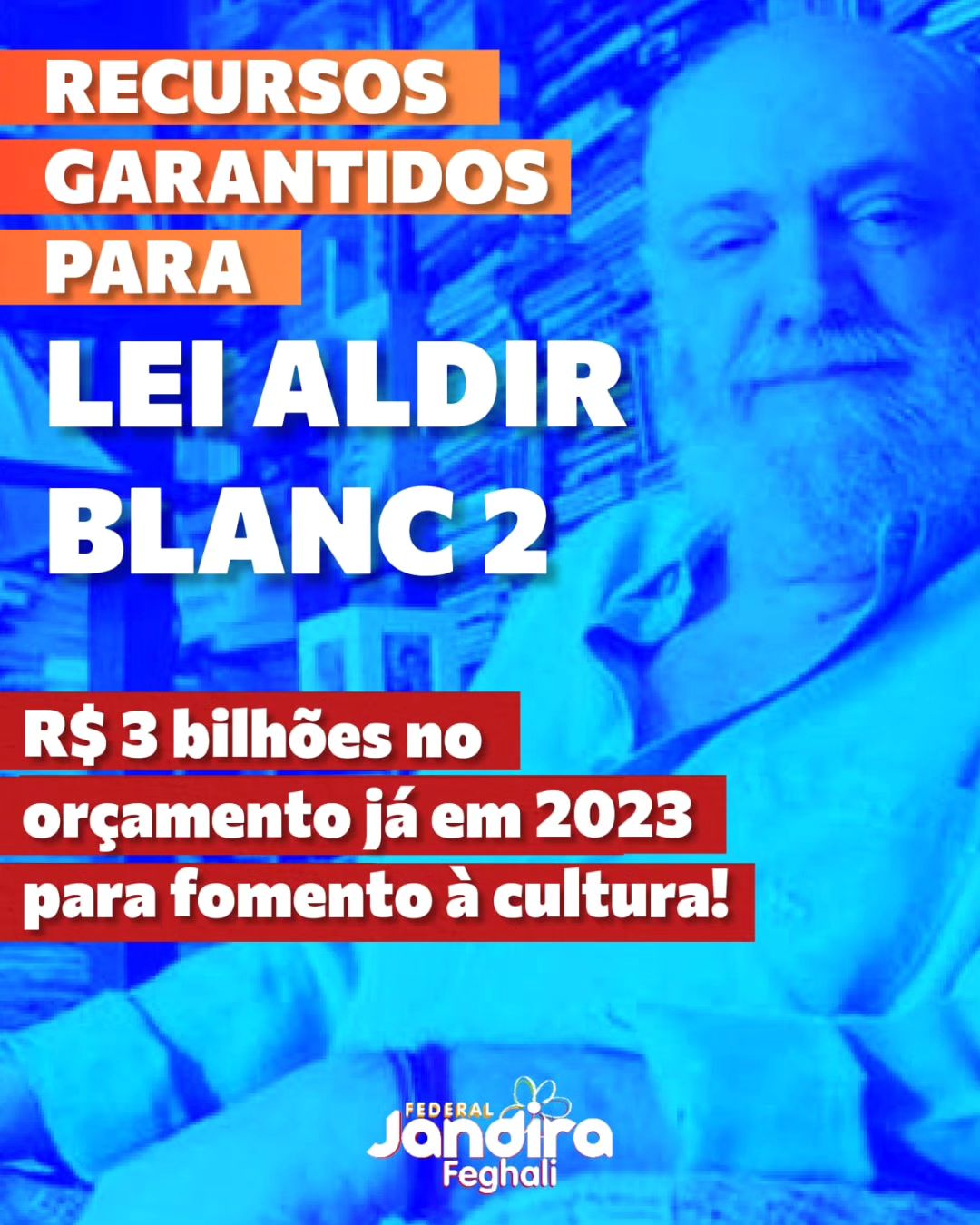 A Lei Aldir Blanc 2 representa um novo parâmetro de fomento cultural no Brasil. Hoje, o Congresso aprovou, no PLN 11, o orçamento anual de R$ 3 bilhões da Lei, de minha autoria, já a partir deste ano. A Aldir Blanc 2 é permanente e promove uma série de benefícios para toda a cadeia da Cultura. Ao aumentar e descentralizar a distribuição de recursos, empregará milhões de pessoas e possibilitará o surgimento plural de estéticas, além de consolidar a retomada de valores civilizatórios dos quais não podemos abrir mão. Viva a Cultura Brasileira!