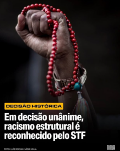 Em decisão histórica e unânime, o STF reconheceu o racismo estrutural no Brasil. Trata-se de um passo fundamental para que o Estado brasileiro enfrente, de forma institucional, uma realidade que marca nossa história e produz desigualdades todos os dias. O reconhecimento é importante, mas precisa ser acompanhado de políticas públicas, responsabilização e enfrentamento permanente. Democracia também se constrói com justiça racial!